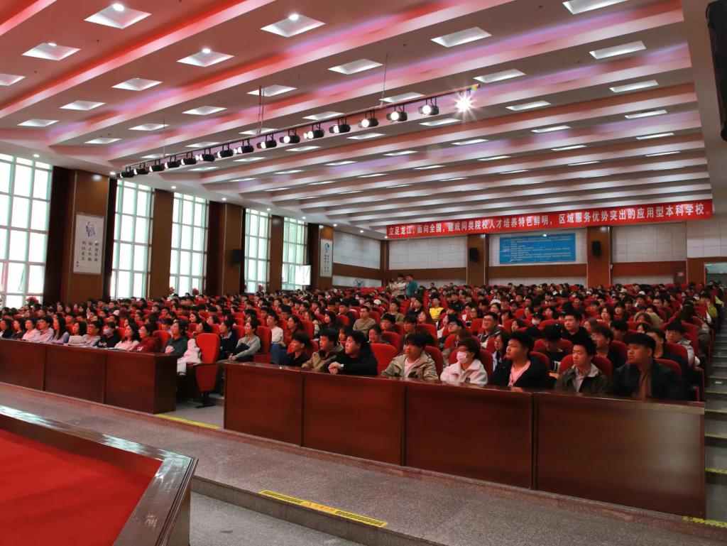 林书记以《笃定信心向未来 踔厉奋发新征程》为题进行授课。他从“深入了解国内外局势,明确当前发展形势”、“分析研判当前就业形势,探索拓宽就业工作思路”、“回归学习本位,营造优良学风,铸练一技之长”等三个方面,通过详实的数据和生动的事例引导学生选择适合自己的职业发展道路,强化“内生动力”,在大学的生活中铸练一技之长。林书记向大家提出三点要求,一是将弘扬铁人精神植入学风,激发自主学习内生动力。要厚植爱国情怀,赓续铁人精神,努力学习本领,以铁人为榜样致敬时代英模,以铁一般信仰、铁一般信念、铁一般纪律、铁一般担当,学习王进喜的“识字搬山”学习精神,激发自主学习内生动力;二是将优良学风培育融入生活,启迪科学规划内生动力。要加强自我规划、自我管理、自我监督,打造健康生活和高效学习的个人生活,鼓励大家制定科学的个人规划,形成健康的作息表,养成自觉、自律、自理的学习生活习惯;三是将学习专业知识置于首位,注重提升综合内生动力。要学在平时,潜心消化,扎实掌握,知其然,知其所以然。正确认识学习专业知识的重要性,保证学习专业知识的时间,努力提升专业兴趣,保证学进去、学深入、学扎实。他鼓励学生要根据课程安排、个人成长、就业规划等制定新学期的目标和计划,珍惜大学美好时光,做有理想信念、有高尚情操、有崇高追求、有坚定信仰的当代青年。