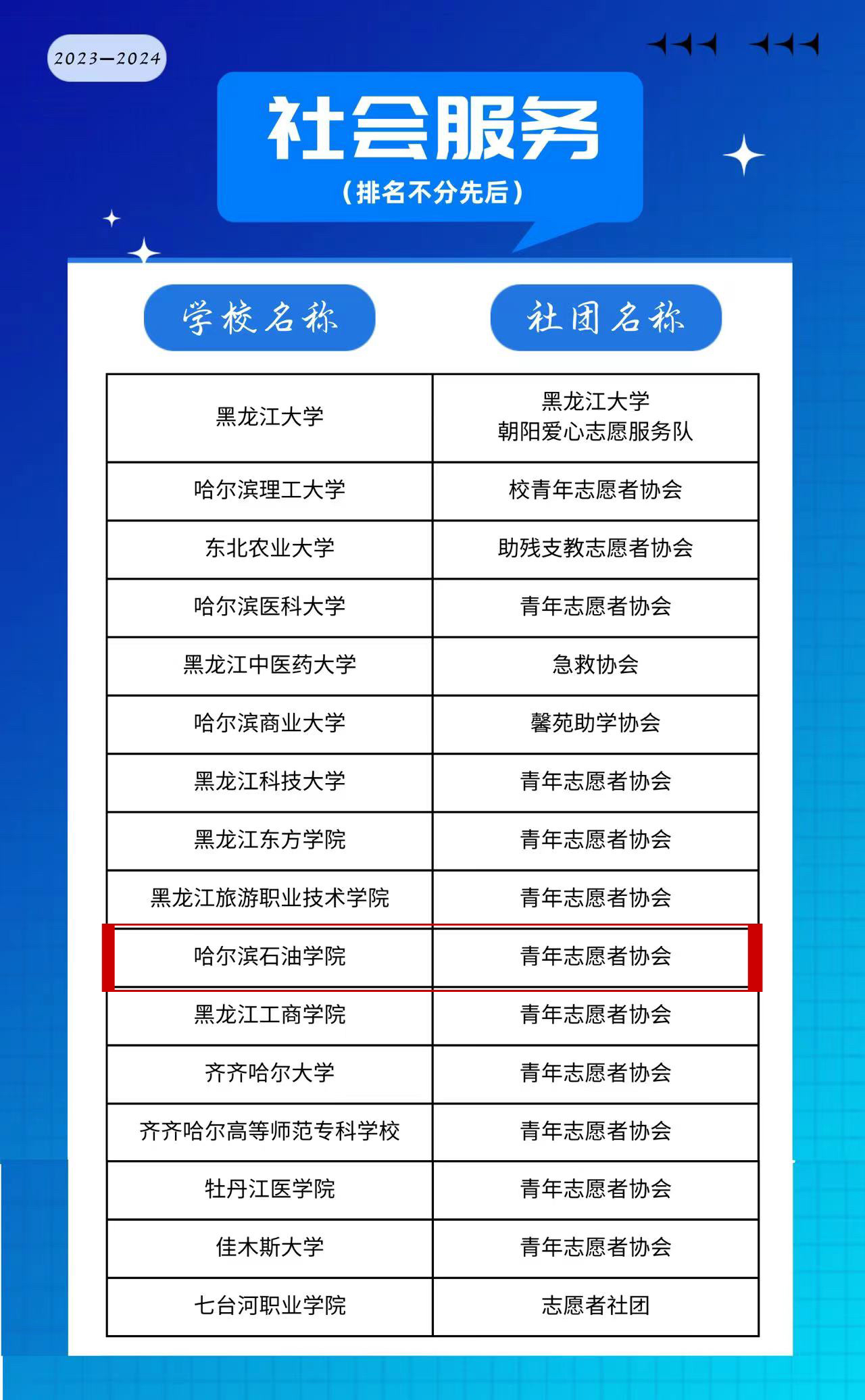 近日,团省委、黑龙江省学联积极开展“活力社团”评选活动,综合校内推选、活动展示页点赞、抖音视频展示情况,聚焦社团展示十大领域,结合各高校学生社团活动开展实际和事迹成果,经评选发布2023-2024学年黑龙江省高校“活力社团”TOP100榜,冰球官网青年志愿协会选入省高校“活力社团”TOP100。