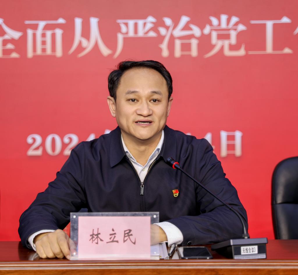 党委书记林立民作总结发言。他表示召开全面从严治党工作会议,主要是学习贯彻习近平总书记关于党的自我革命的重要思想,落实省委教育工委关于巡视整改工作要求,推动学校全面从严治党向纵深推进。他就此项工作的落实提出三点意见。一是强化学习、提高站位,进一步增强做好全面从严治党工作的责任感使命感。一要深刻把握习近平总书记在二十届中央纪委三次全会上提出推进自我革命“九个以”的实践要求,紧密结合工作实际,把党的自我革命的思路举措搞得更加严密,把自我革命抓具体、抓深入。二要深刻领悟习近平总书记对反腐败斗争的重大判断和重要要求,清醒认识反腐败斗争严峻复杂形势以及出现的新情况新动向,下大气力铲除腐败滋生的土壤和条件,坚决打赢反腐败斗争这场总体战、攻坚战、持久战。二是回顾工作、查找不足,始终保持永远在路上的坚韧和执着。一要践行“两个维护”坚定坚决,深刻领悟“两个确立”的决定性意义,坚持把“两个维护”作为党的最高政治原则和根本政治规矩,不断提高政治判断力。二要推进主题教育见行见效。坚持把高质量开展好主题教育作为重要政治任务,一体推进理论学习、调查研究、推动发展、检视整改、建章立制等工作,持续推动主题教育走深走实。三要不断夯实基层党建基础。持续强化党建业务互融互促,着力激发“两个作用”,基层党建质量不断提升。四要将队伍严管厚爱落实落细。深入分析并明确指出各党总支工作中的优缺点,强化党建述职评议工作,大力培树先进典型,队伍精气神不断提振。三是明确任务、落实举措,坚持不懈推动全面从严治党向纵深发展。一要强化思想建设,坚持不懈用习近平新时代中国特色社会主义思想凝心铸魂。二要强化纪律建设,抓好新修订的《中国共产党纪律处分条例》贯彻执行。三要强化作风建设,驰而不息纠“恶风”树“新风”。