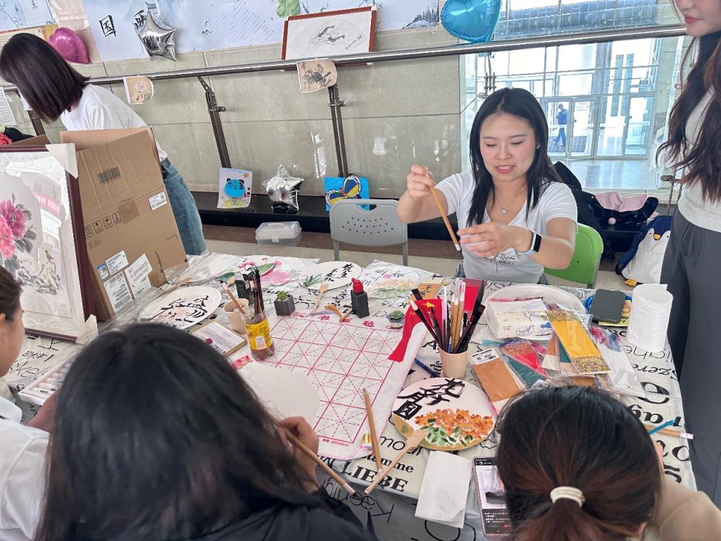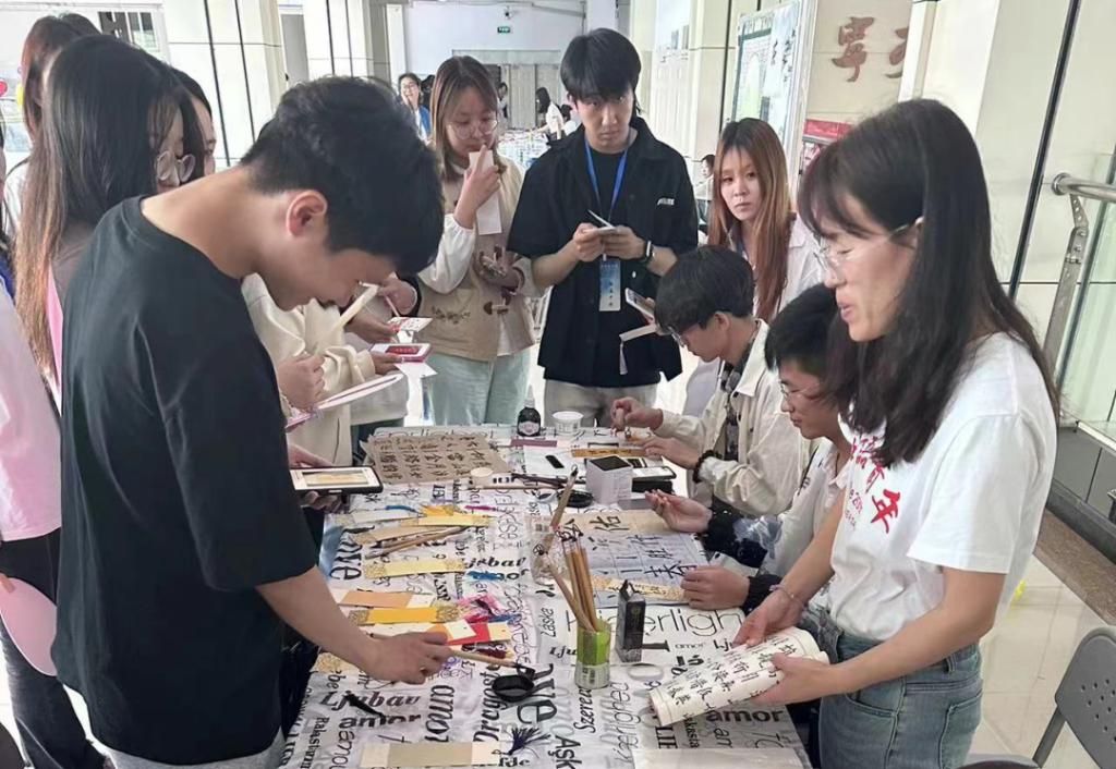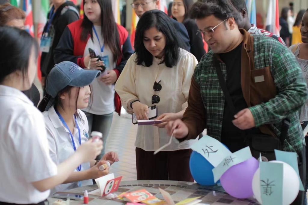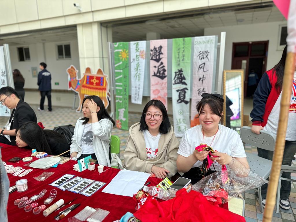 同学们亲身体验书法笔墨、中国结艺、汉服妆造、茶艺冲泡等文化瑰宝,沉浸式感受中华优秀传统文化的深厚底蕴。汉服体验专区,备有衣袂翩翩、宛若惊鸿的华美汉服,邀世界友人共品悠悠古韵,一睹盛世芳华。传统手工艺专区,手绘团扇及信笺、剪纸、绒花、黏土、编五彩绳等精巧工艺蕴含着中华民族的工匠精神和美学意蕴。