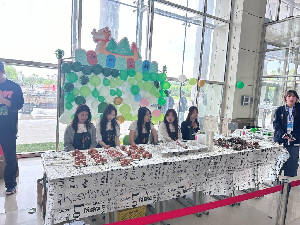在文化体验区中,首先映入眼帘的是五彩斑斓的各式菜肴。美食并不局限于传统的菜式,文化节上除了那些经典的中华美食,也有西方许多精巧可爱的甜点。在美食摊位现场,同学们不仅可以品尝到各式佳肴,还能参与到制作过程中。包粽子、煮汤圆、煮鸡蛋、做西点、品咖啡……同学们在老师的指导下,体验着劳动的乐趣。这种亲身的参与感,让同学们更加深刻地理解劳动的意义和价值。