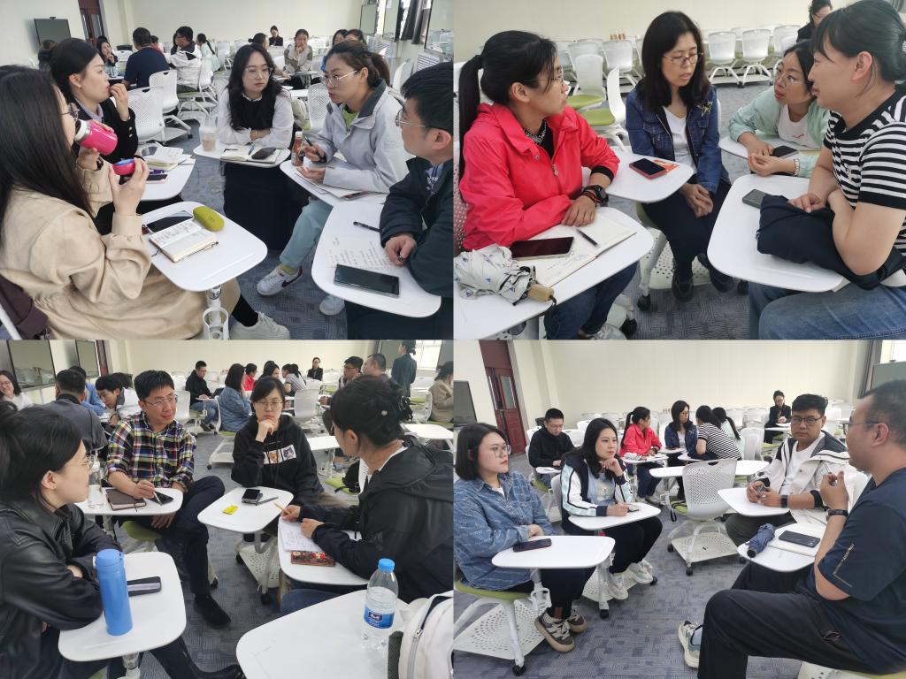 最后,通过独学、讨论、对话三个环节和老师一起进行了实操练习,让老师们切身体验到了如何在自己的教学中应用对分课堂。现场老师们讨论热烈,在对话环节中很多老师提出了精彩的问题,王瑞老师一一进行了分享和解答。