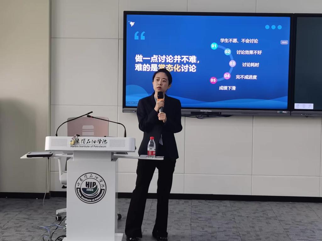 5月28日下午,冰球官网在第一教学楼210智慧教室,举办了“对分课堂”微型工作坊,石油工程学院王瑞副教授主讲,各教学单位近三年入职教师参加了本次工作坊,教师教学发展中心主任李洪华主持本次活动。