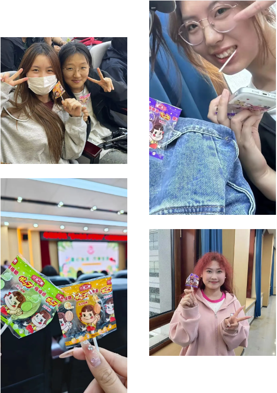 活动最后,所有同学收到了一支学院为大家准备的棒棒糖,此刻所有同学们化身为小孩子,尽情品味这份甜美。