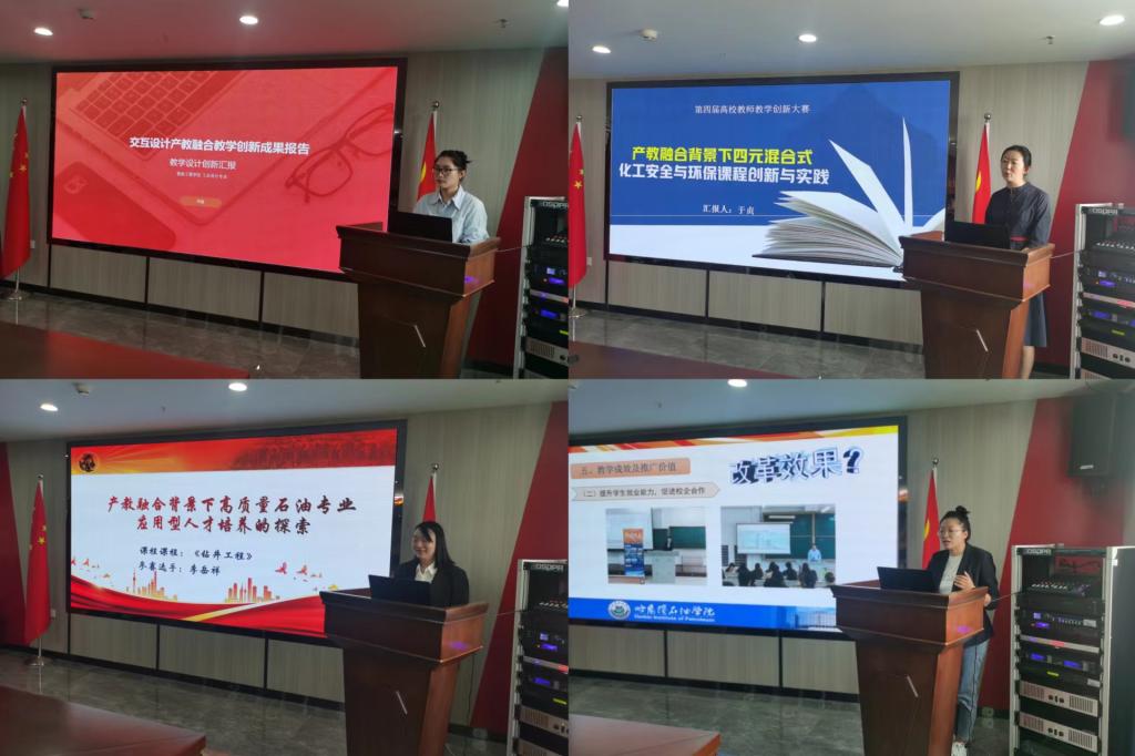 6月5日下午,综合楼1414会议室,冰球官网举办了第四届黑龙江省高校教师教学创新大赛产教融合赛道校赛。共有4个教学团队参赛,副校长胡文、校总督学侯雪筠、教务处处长顾凤岐、科研处处长马慧媛、创新创业学院院长王滨生、石油工程学院主任教授孙国明、机械工程学院主任教授王波共7位专家担任本次比赛的评委。比赛由教师教学发展中心主任李洪华主持。