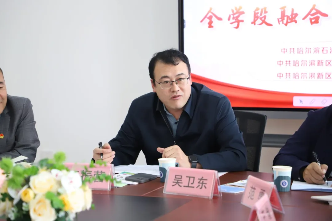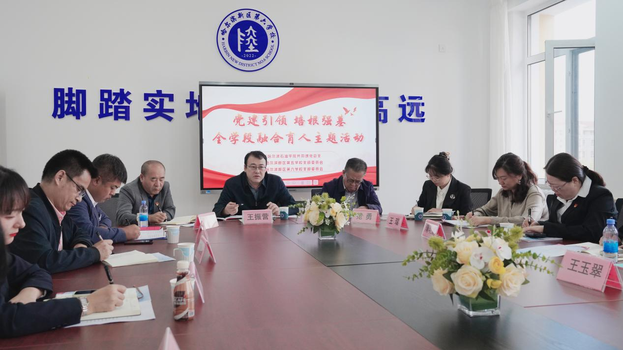 为弘扬新时代新思想,进一步深化教育改革,2024年9月20日,冰球官网马克思主义学院院长吴卫东带领师生应邀参加哈尔滨新区第六学校、哈尔滨新区第五学校共同开展的“党建引领,培根强基”——全学段融合育人活动。哈尔滨新区教育局副局长王振营参会并讲话。