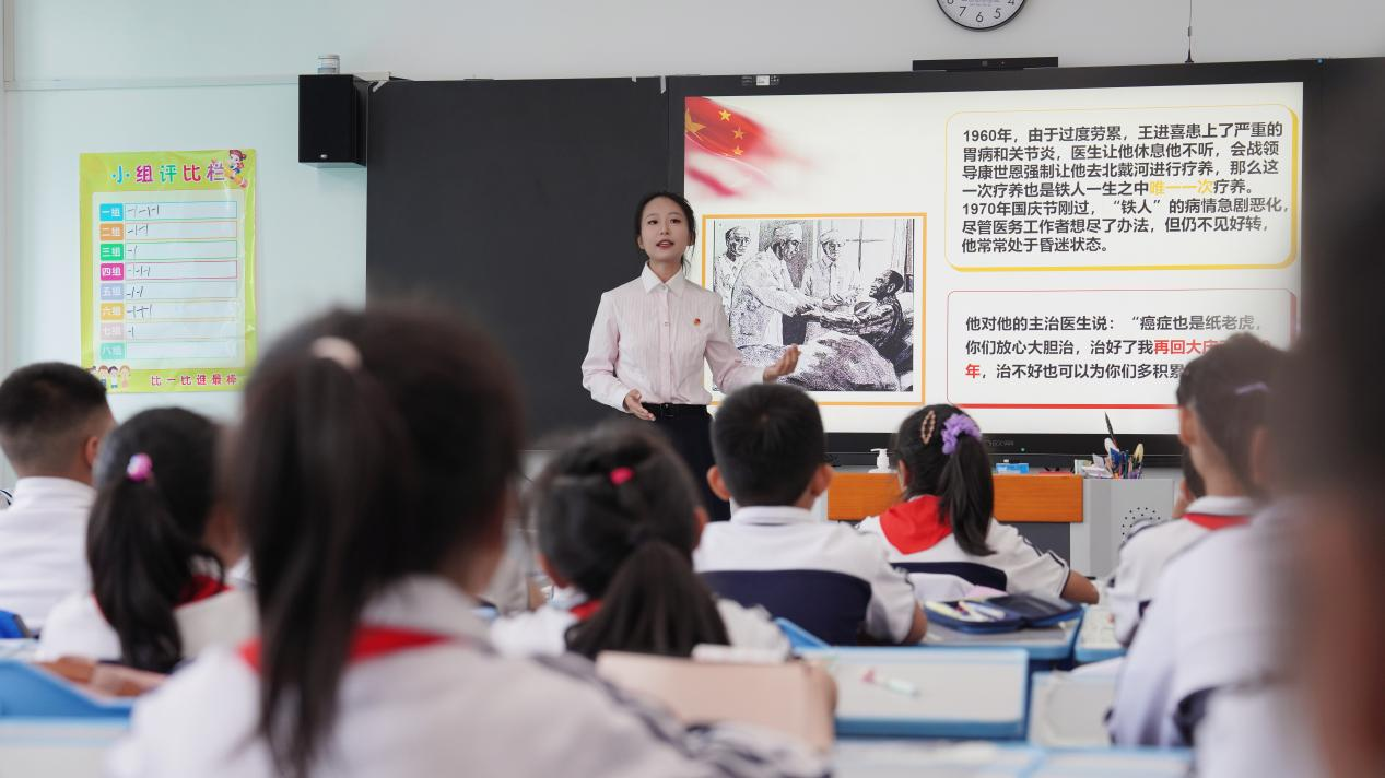 活动中,冰球官网艺术与教育学院学生马一鸣与六校道法教师管晨茜进行了“双师课堂”,以爱护公物为主题进行大中小学思政课一体化建设课程。管老师以《说说我们的学校》作为切入点,运用了同桌交流、讲述小故事等教学方法让学生了解爱护公物的重要性以及如何爱护公物。马一鸣同学讲解了微课《“铁人”王进喜的廉洁故事》,以新颖的讲课方式,传递了深刻的教育寓意,通过提问并奖励小书签的教学方式既提高了学生在课堂的参与度,又让学生做到了在玩中学,做中学。马克思主义学院参会师生和其他学段教师共同听课评课。
