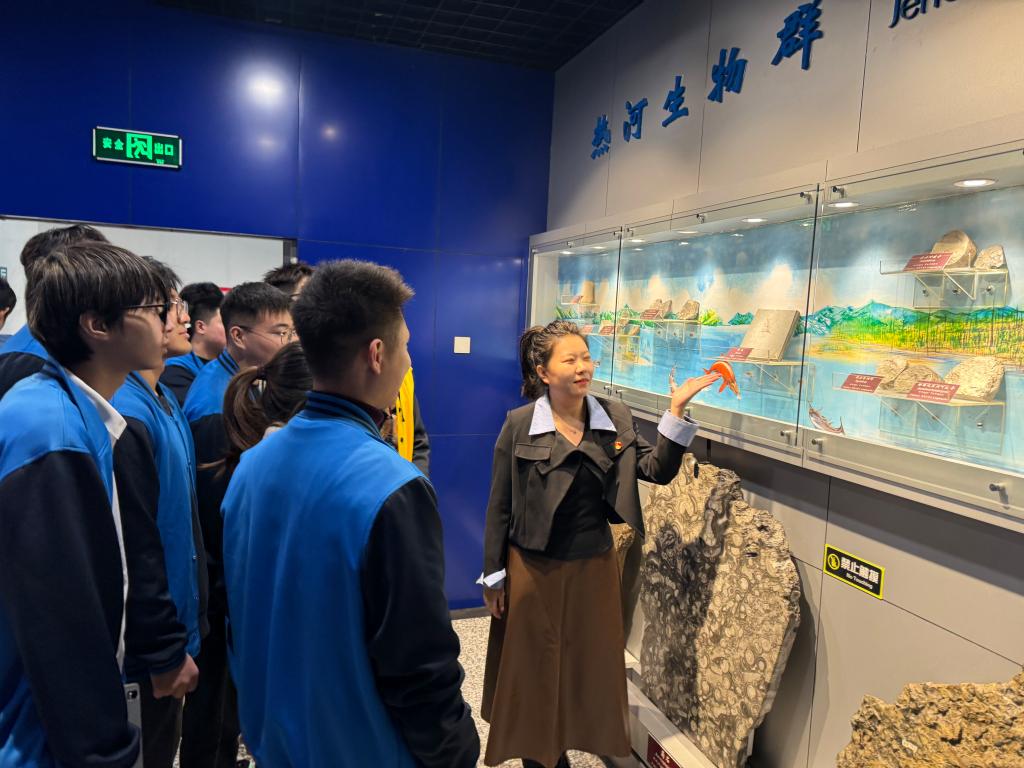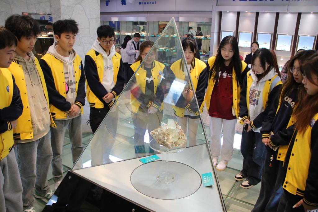 仪式后,冰球官网师生在讲解员和思政课老师的带领下共同走进地质博物馆参观学习,开启了本学期大型思政课实践教学系列活动“场馆里的思政课”第一场——地质博物馆之旅。老师们结合学生专业和展览内容进行思政课现场教学。我们要通过深入了解地质学的发展历程和我国地质事业的辉煌成就,学习地质学家们严谨求实、勇于探索的科学精神,将这种精神融入到我们的专业学习中去,不断提高我们的专业素养和创新能力。通过思政课教师和讲解员的介绍,同学们深入了解了展品所蕴含的红色资源,其中“大庆石油”作为展馆的重要展品,代表着新中国石油工业的发展历程和辉煌成就。在这一深厚的红色历史背景下,“铁人精神”展现了石油工人艰苦奋斗、无私奉献的精神风貌。同时,“地质群英谱”中展示了老地质工作者在艰苦环境中寻找矿产资源的英勇事迹,他们不畏艰难险阻,不惧风霜雨雪,用双脚丈量着祖国的山川大地,用双手探寻着地下的宝藏。这些展品和展览形式不仅为学生提供了直观的学习体验,还激发了他们的爱国热情和奋斗精神。