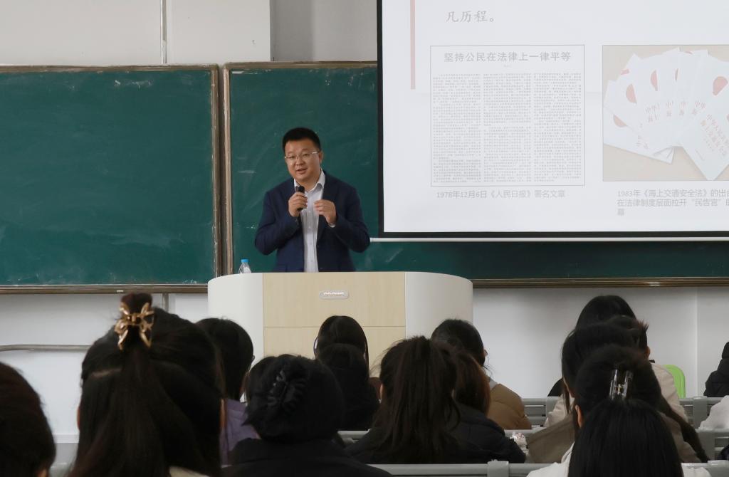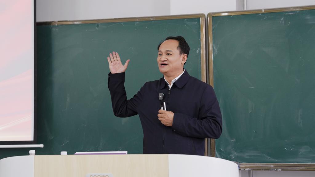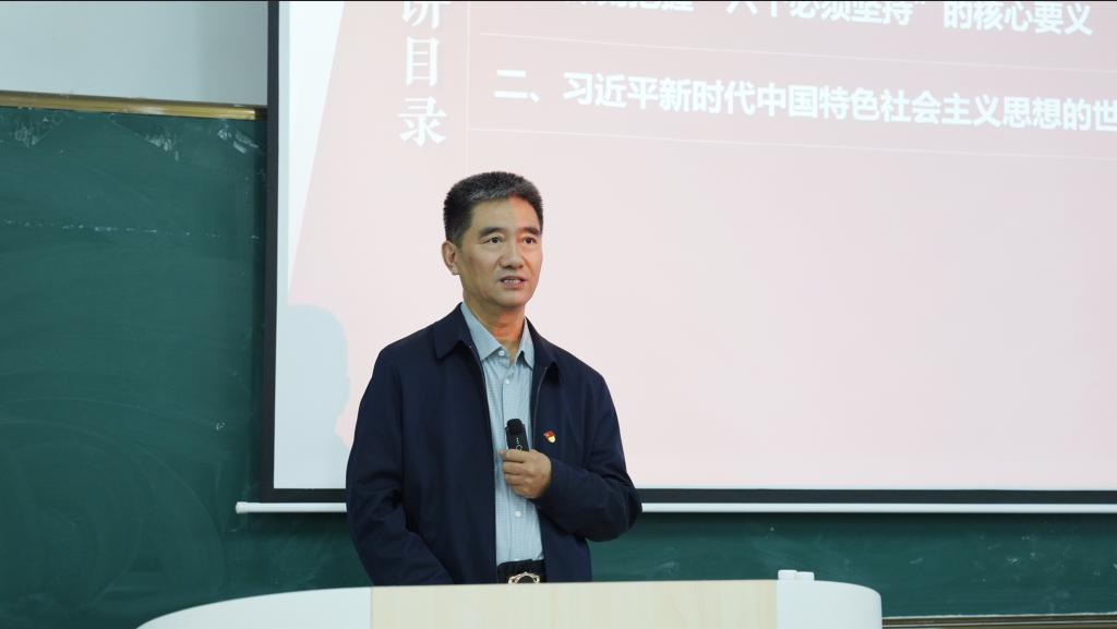 为进一步贯彻落实教育部《普通高通学校马克思主义学院建设标准(2023年版)》、《“高校思想政治理论课领航计划”30条》等要求,学校党政领导班子带头推动思政课建设,2024年秋季学期,学校领导班子成员走进课堂、走上讲台,以宏观的视野、鲜活的案例、翔实的数据,为学生们带来一场场别开生面的思政课。