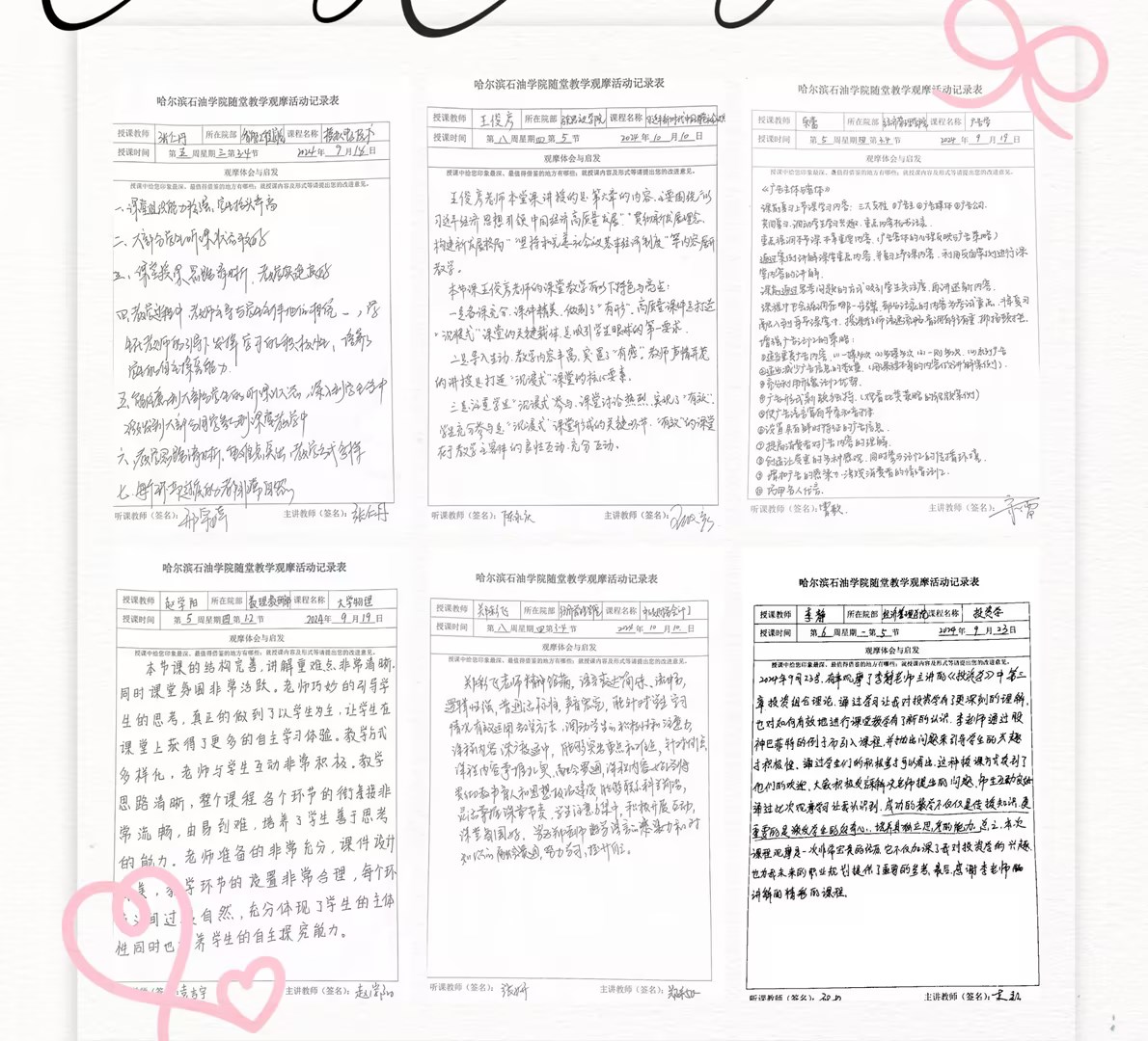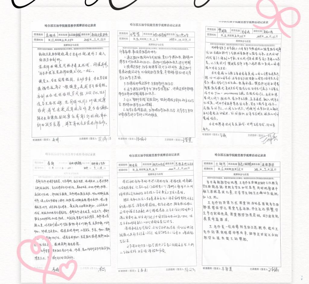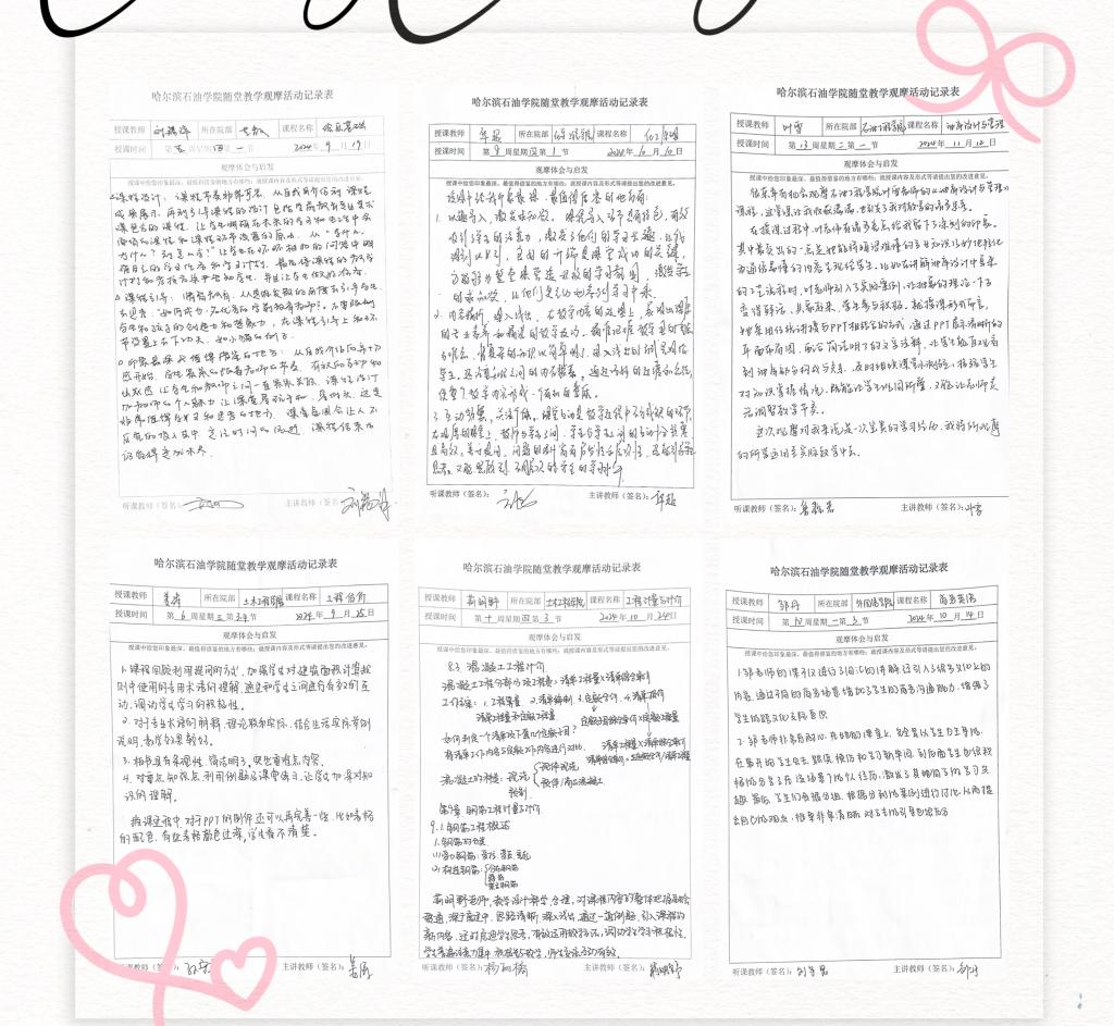 教师教学发展中心作为本次活动的组织单位,事前充分宣传动员,发布了活动通知、示范教师简介及课程安排,同时为了保证示范教师的课堂秩序,每周做好下一周的观摩人次情况统计。活动结束后,参加观摩的教师提交了记录表,对每位教师的记录表进行了认真的查阅,绝大多数教师都能够认真听课,认真思考,记录示范教师课堂上的每个授课环节及课堂管理的方式方法,包括仪容仪表、语音语调、课堂互动、教学方法的运用、板书、ppt的制作、课程思政等。参加观摩的教师普遍反映,通过观摩活动,他们感受到了课堂教学改革与创新的魅力,并表示出了浓厚的实践兴趣。