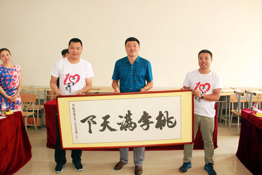 校友们向学校赠送了满载真情的字画“桃李满天下”,以表达母校对自己的培养,感恩老师们的谆谆教诲,祝愿母校越办越好!在依依不舍中,大家相约一年后学院15周年华诞再相聚!