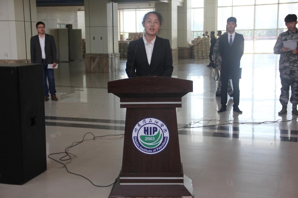 大会在雄壮的国歌中拉开帷幕。教师代表自动控制工程学院的陈泮洁老师分别从学会独立和坚强、学会自主学习、学会沟通和交流、积极参加实践活动、懂得感恩等方面对同学们提出了指导与期望。在校生代表经济管理学院2014级的王一仲同学与新同学们分享了自己的成长历程,并希望新同学不要浪费青春,确定自己大学时代的目标,为大学生活规划出完美的蓝图。新生代表土木工程学院的赵志浩同学表达了所有2017级新生将会秉承着博学求实,励志创新的哈油校训,同甘苦,共进退,遵守学校纪律,努力完成好军训任务。
