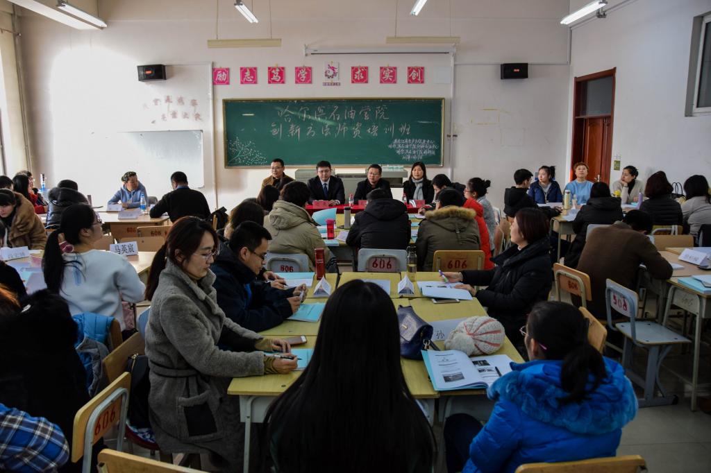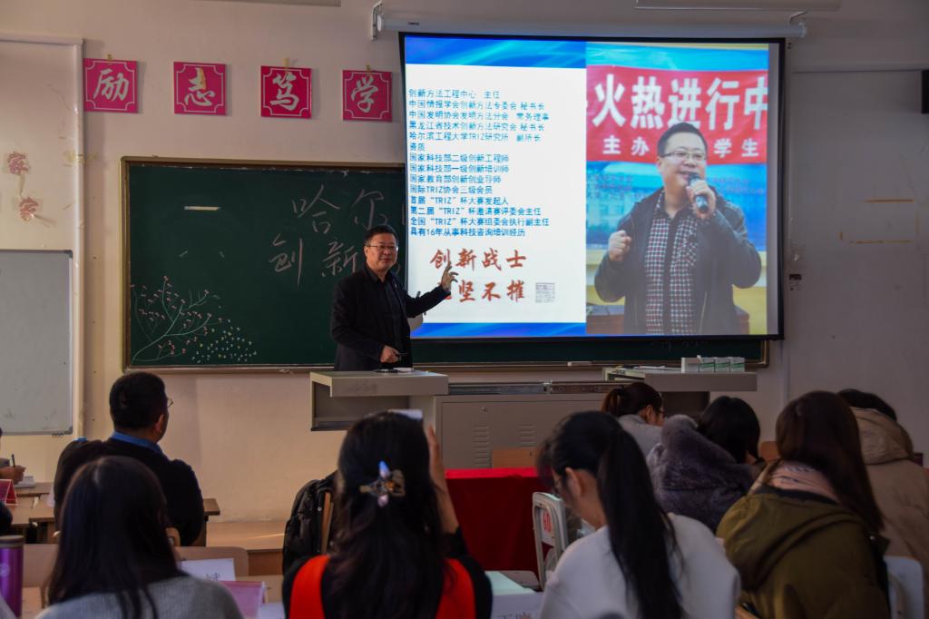 为加强创新方法学在高校的推广和应用,切实提高黑龙江省高校教师队伍的创新能力和水平,2017年12月17日-21日,由黑龙江省科技厅生产力发展促进中心、冰球突破豪华版官方网站创新创业中心和科研开发处联合举办的2017年高校创新方法师资培训班正式开班,共有来自沈阳药科大学、哈尔滨华德学院、黑龙江农垦职业技术学院、冰球突破豪华版官方网站共5所高校的86名教师参加了本次培训。2017年12月17日举行开班仪式,黑龙江省生产力促进中心、创新方法工程技术研究中心主任、国家科技部二级创新工程师、国际TRIZ 协会三级专家、TRIZ大赛主要负责人吴永志副研究员、大庆采油厂创新方法培训师、中国企业创新大赛二等奖获得者、全国TRIZ大赛评委赵爽老师应邀来到冰球官网,创新创业中心主任张耘主持开班式,受主管创新创业工作的副校长冯研委托,科研开发处处长王妍玮博士代表冰球官网对嘉宾表示欢迎。