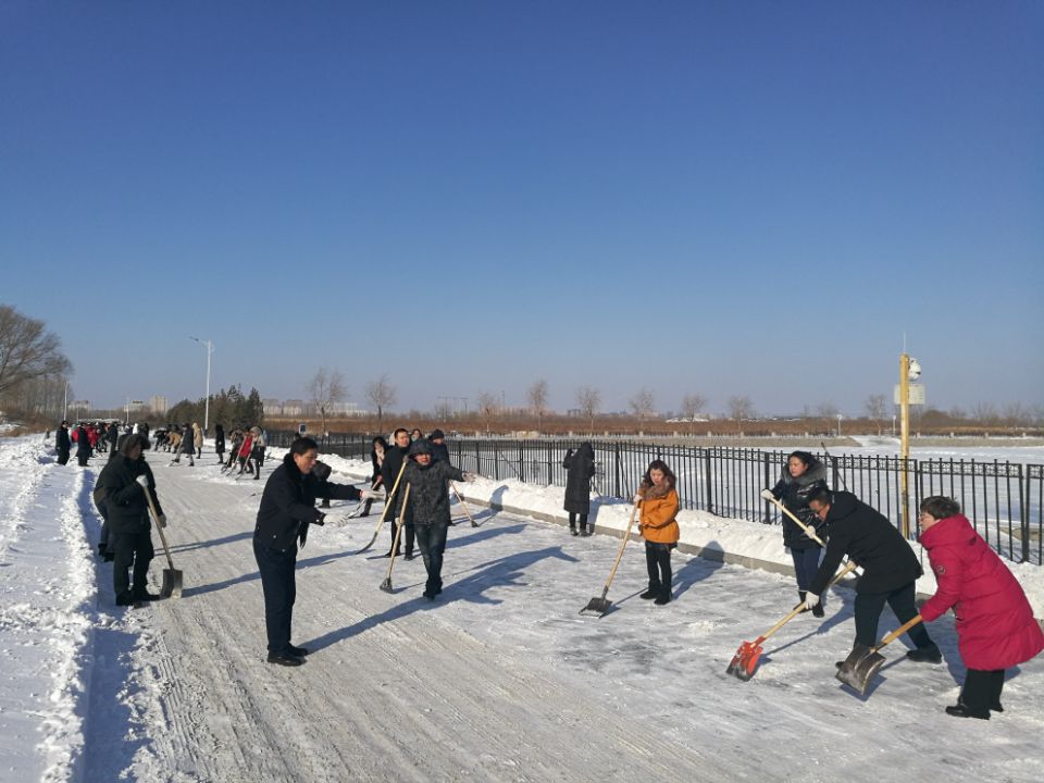 连日来的持续降雪,校园内的道路覆盖了厚厚的积雪。开学在即,为了保证学生出行安全,2018年3月4日,学校组织全体教职工集体清雪除冰,确保校园内道路行驶安全畅通。