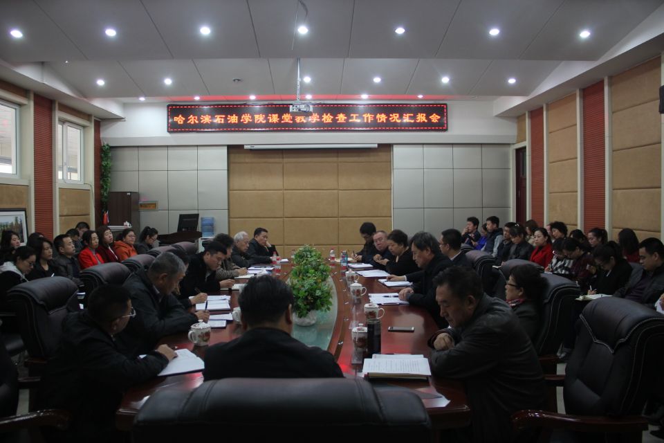 2018年4月3日,冰球官网召开课堂教学检查工作情况汇报会。校领导、各二级学院院长、副院长、党总支书记(副书记)、系主任及教务处相关人员参加会议。