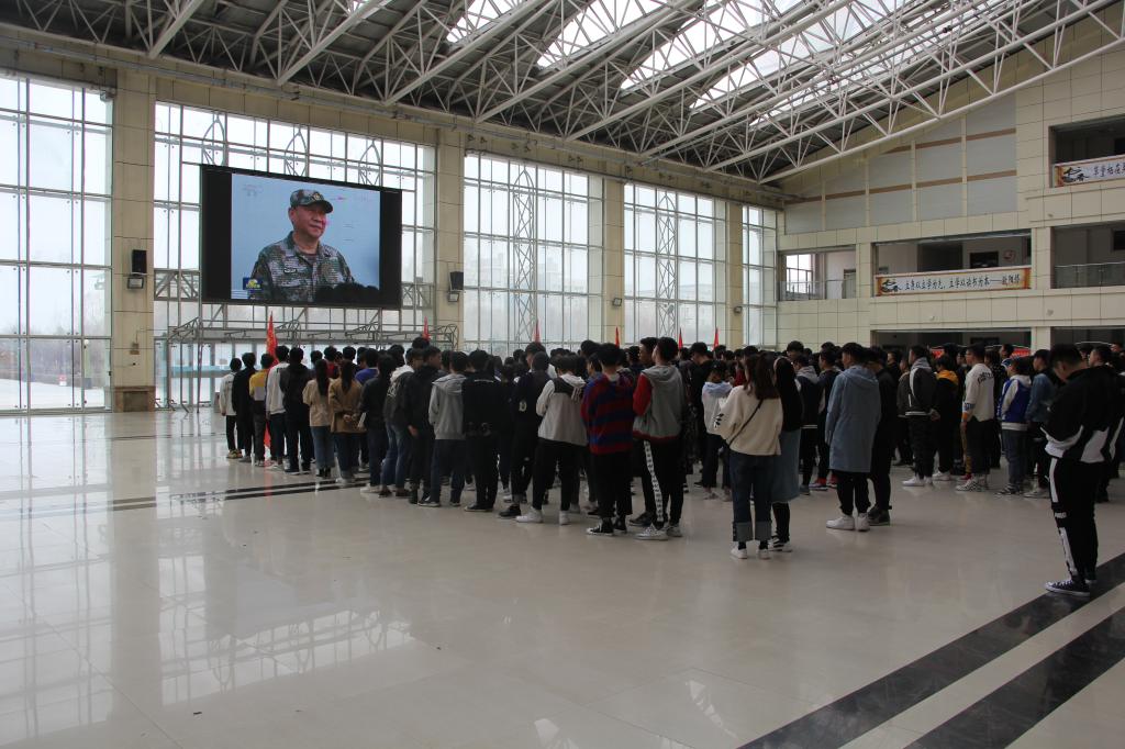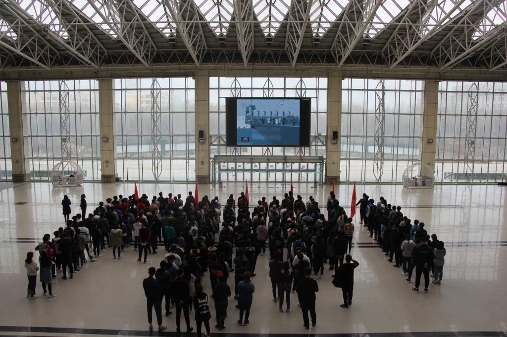 为进一步激发师生的爱国主义热情,2018年4月13日12时20分,冰球官网组织师生在主教学楼阳光大厅集中观看南海海域大阅兵视频。