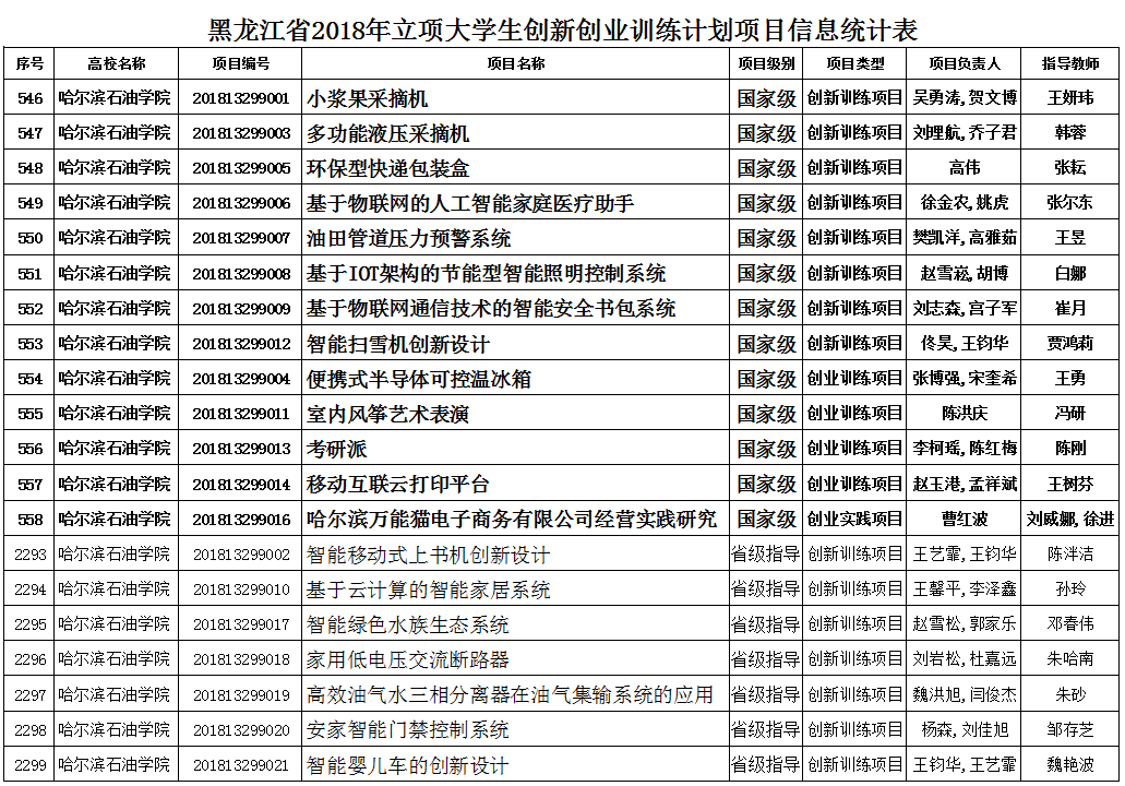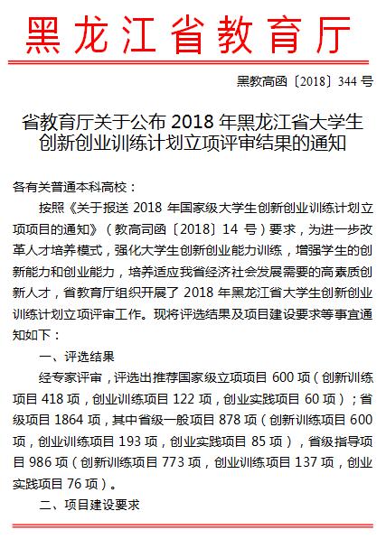 根据《关于报送国家级大学生创新创业训练立项项目的通知》(教高司函[2018]14号)文件,及《省教育厅关于公布2018年黑龙江省大学生创新创业训练计划立项评审结果的通知》(黑教高函[2018]344号)的文件精神,冰球官网突破历史,全校共有13个项目首次入选了“国家级立项”,另有27个项目入选“省级指导立项项目”。