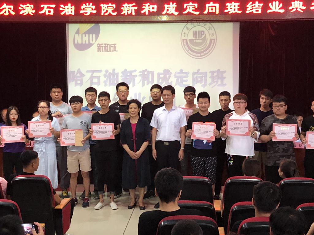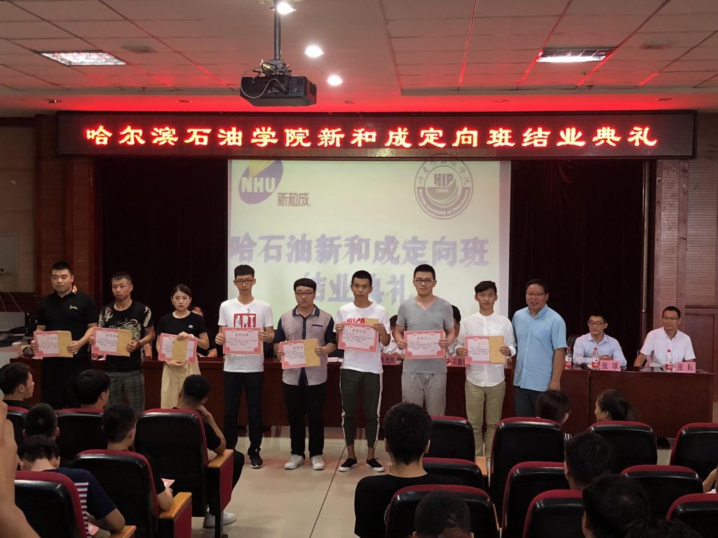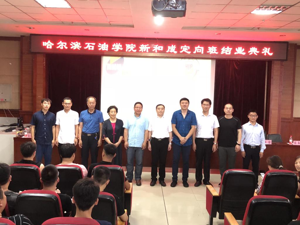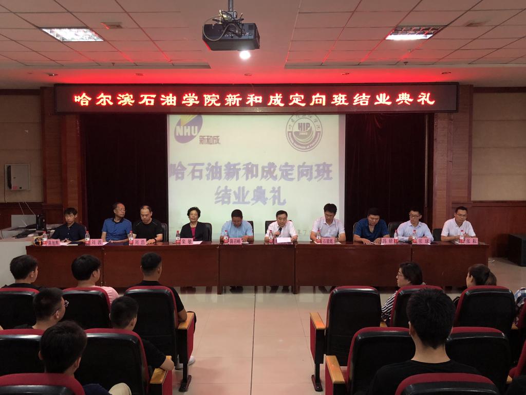 2018年7月11日上午,“新和成定向班”结业典礼在主教518活动室举办。冰球官网党委书记焦光纯、浙江新和成有限公司黑龙江分公司副总经理陈召峰、副校长栾敏、副校长冯研、化工学院院长刘波、校企合作与发展办公室主任张耘、招生就业办副主任陈旭辉以及各有关二级学院的领导、老师出席了本次典礼,陈旭辉同志主持本次典礼。