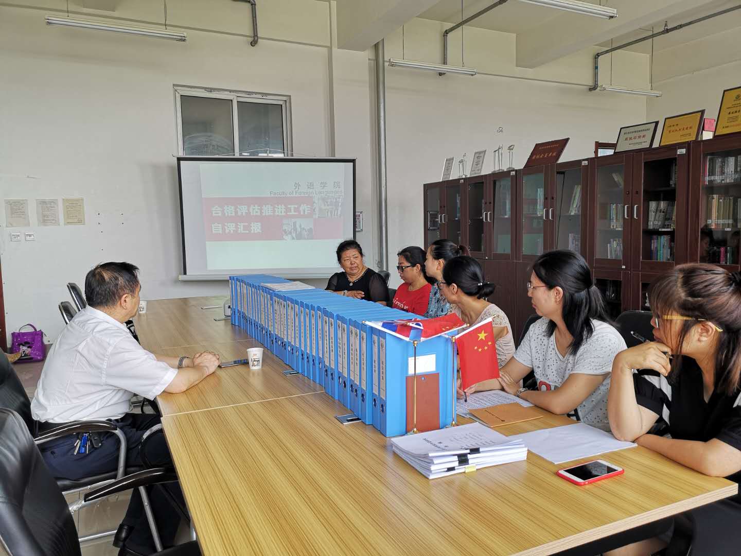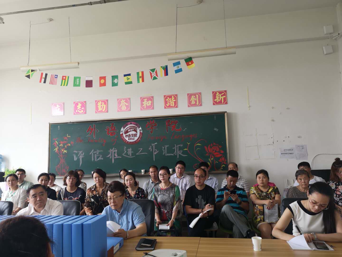2018年7月15日,在谢永利校长的倡议下,外语学院主办了冰球突破豪华版官方网站迎接2019年本科教学工作合格评估推进工作经验交流会。冰球突破豪华版官方网站党委书记焦光纯,党委副书记杨宏,各学院、教学部、校团委、学工处和教务处的主管领导及骨干教师参加了此次交流会。本次会议旨在交流迎评工作经验、凝聚特色亮点,为冰球官网的评估准备工作再上新台阶和圆满完成评建各项任务奠定坚实的基础。