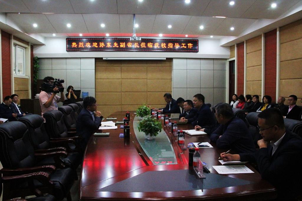 2018年9月12日,刚刚在北京参加完全国教育大会的黑龙江省副省长孙东生来到冰球突破豪华版官方网站,向广大师生宣讲全国教育大会精神,就高校思想政治教育和意识形态工作进行调研,对全校教职员工致以亲切的节日问候。学校理事长、校长谢永利,党委书记焦光纯及学校领导班子成员、骨干教师代表陪同参观学校并座谈。