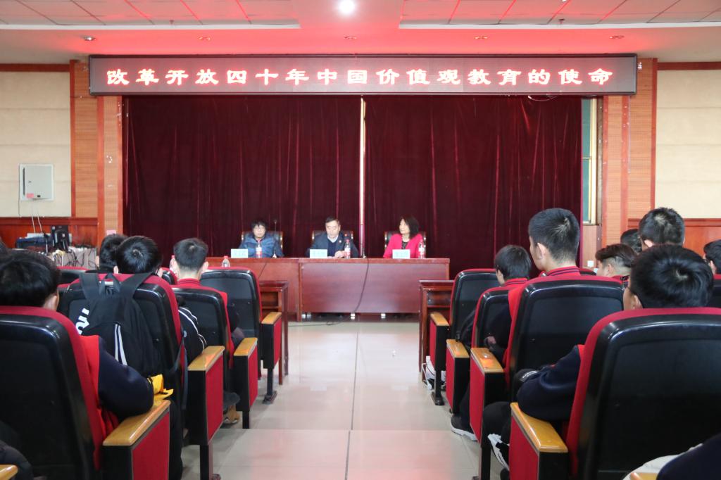 本次活动邀请了吉林大学马克思主义学院副院长、博士生导师吴宏政教授为冰球官网师生进行了题为《改革开放40年中国价值观教育的使命》的报告会。校党委书记焦光纯出席了报告会并致辞。思政部、科研处、宣传统战部和学工处等部门领导、教师以及部分学生代表聆听了此次报告会。