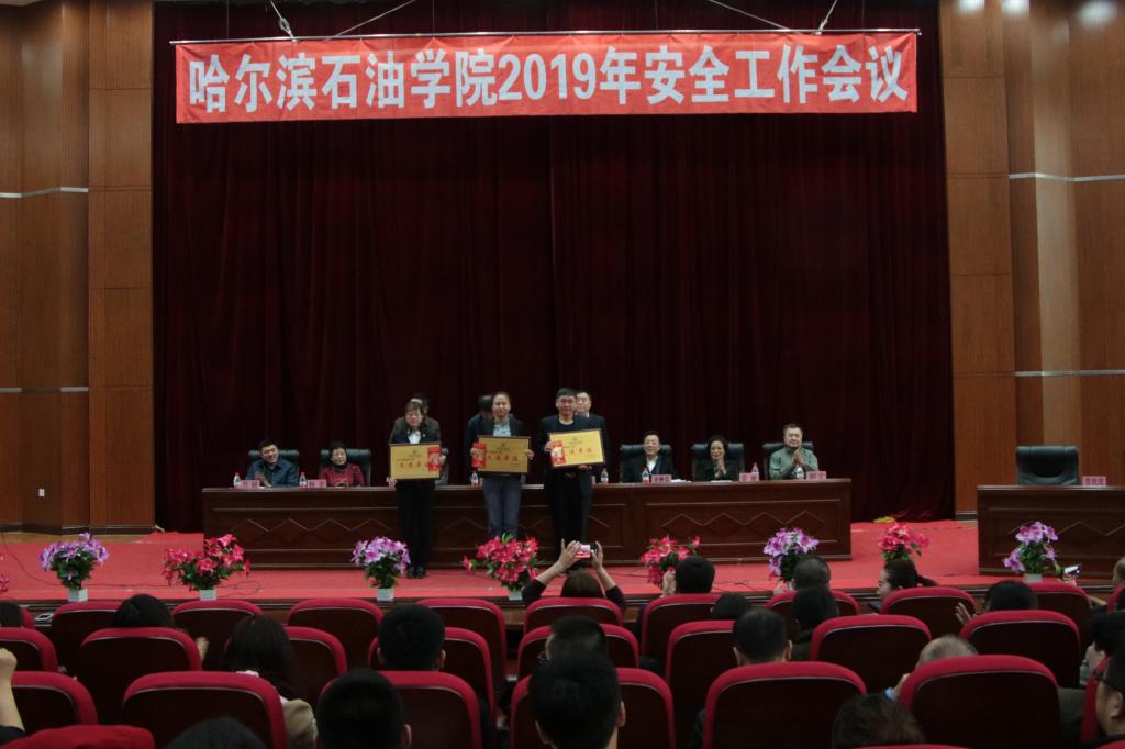 党委副书记杨宏同志宣读了《冰球突破豪华版官方网站关于表彰2018年度安全稳定工作先进单位及先进个人的决定》,校领导为获奖单位和获奖个人颁奖。安全工作先进集体代表图书馆办公室主任姜薇和先进个人代表土木工程学院团总支书记李培育分别做了交流发言。
