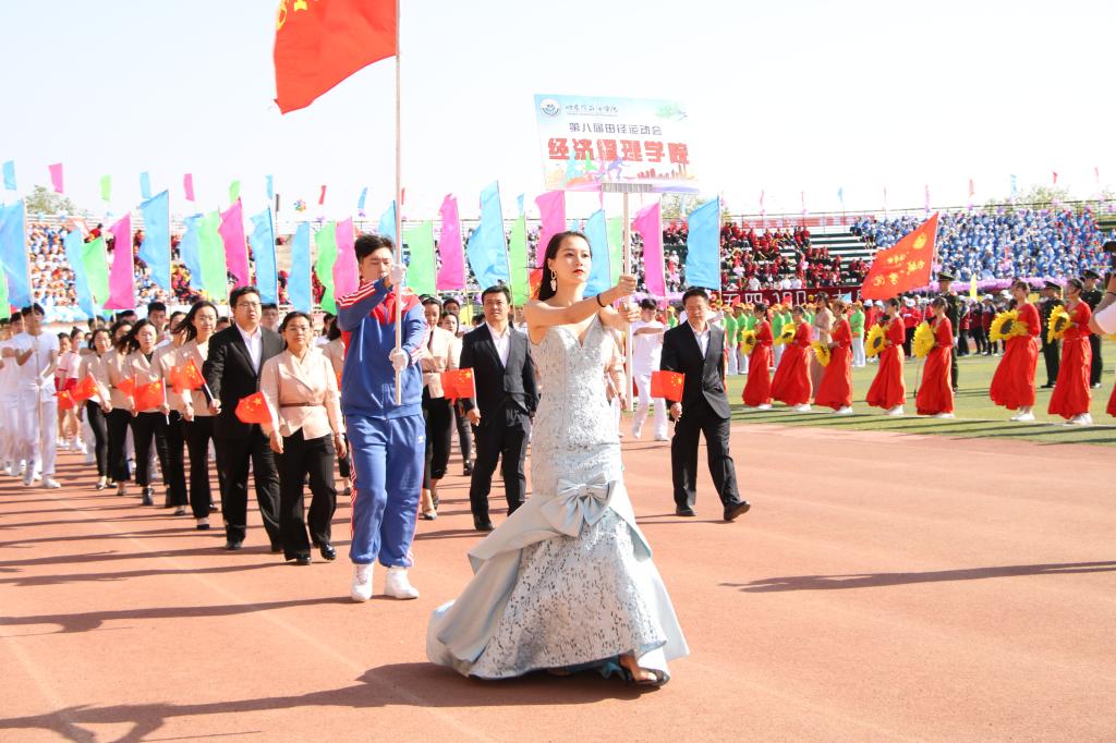 希望全校师生以饱满的热情、积极向上的心态,参与体育运动,感受体育精神,塑造强健体魄,锻造精神力量,博学求实,励志创新,在激扬青春、超越自我、追逐梦想的征程中书写无悔于时代的壮丽篇章!最后,冯晓校长郑重宣布:“冰球突破豪华版官方网站第八届田径运动会正式开幕!”。在热烈的掌声、欢快的乐曲中,经济管理学院表演了精彩的团体操《绽放青春》,运动会各项赛事正式开赛。
