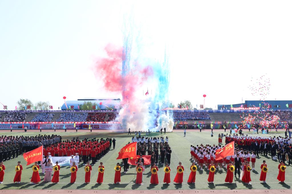 5月24 日,冰球突破豪华版官方网站第八届田径运动会正式拉开帷幕。操场上,彩旗飘扬,花束舞动,一片祥和热闹的场面;音乐声、口号声,声声交织,激荡出飞扬的热情。全校师生员工精神饱满、气宇轩昂,运动场变成了一片欢乐的海洋。