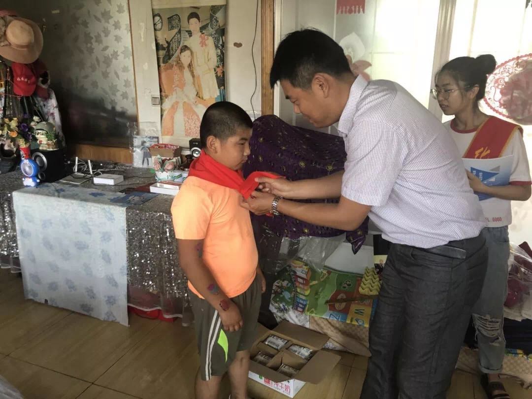 参观、调研结束,村负责人吴洪臣召集了村中家庭经济情况特殊的留守儿童。李长城书记、姜雪峰老师和同学们将提前准备好的学习用品连同美好的祝愿一起送到孩子们手中。拿到慰问品的孩子们露出了开心的笑容。慰问活动中,两位老师纷纷鼓励小朋友们要刻苦学习,在学校做个上进的学生,在家里做个听话的孩子,努力从一名优秀的少先队员转变成社会主义合格的建设者和可靠接班人。