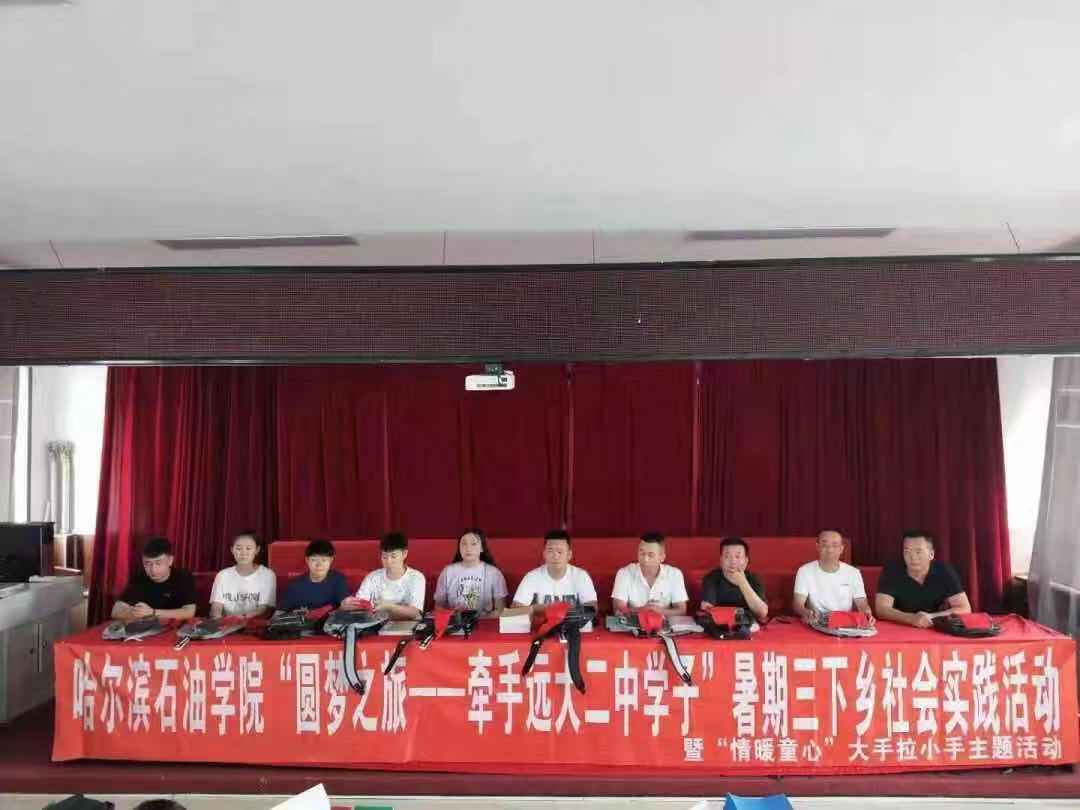 为深入贯彻落实中央宣传部、中央文明办、教育部、共青团中央、全国学联联合下发《关于开展2019年全国大中专学生志愿者暑期文化科技卫生“三下乡”社会实践活动的通知》的文件精神,2019年7月15日冰球突破豪华版官方网站信息工程学院2019年暑期“圆梦之旅——牵手远大二中学子”三下乡社会实践活动在冰球官网社会实践基地兰西县远大乡远大二中成功举办。