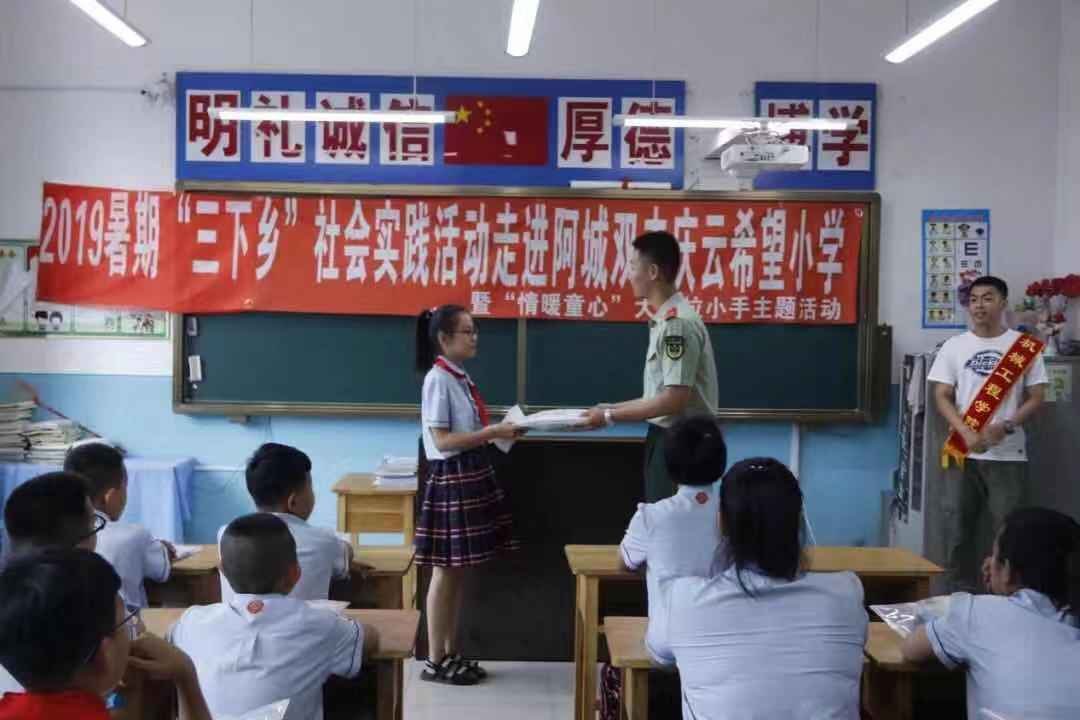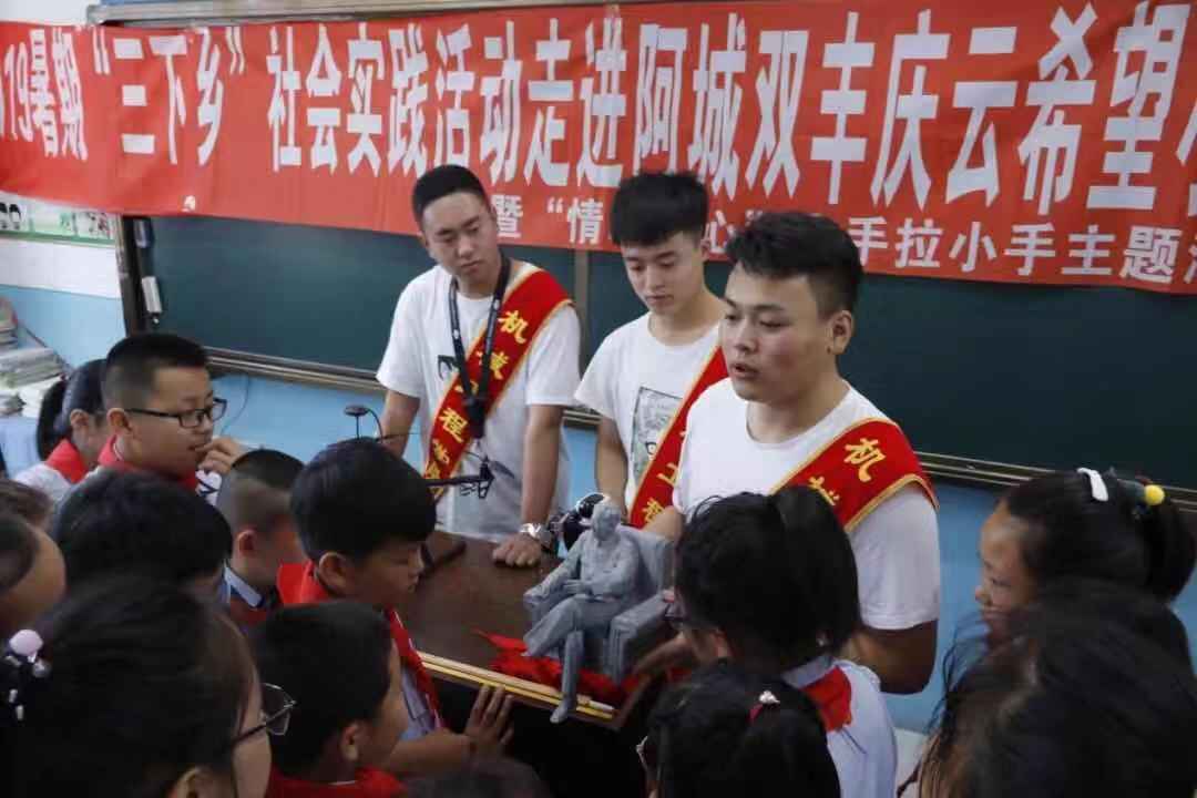 匠心青年,用心起航 7月15日早7:00,冰球官网机械工程学院的师生代表准时在学校出发,前往双丰庆云希望小学。庆云希望小学校长陈彦发和希望小学的小朋友们对冰球官网师生的到来表示了热烈的欢迎。此次“大手拉小手,科技进校园”三下乡社会实践活动的启动仪式在冰球官网机械工程学院志愿者们的自我介绍中拉开帷幕,仪式中,冰球官网师生为希望小学的孩子们赠送了书包、笔袋、水彩笔、笔记本等学习用品,还为少先队员们佩戴了红领巾。