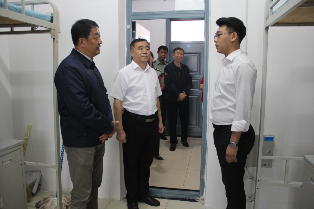 领导们来到参训学生中间,与大家亲切交谈,仔细询问军训适应情况等,鼓励他们要克服困难,在军训中提升自己的意志品质,努力完成军训任务。并来到学生休息区慰问了因身体原因不能参加军训但仍坚持观训的同学,对他们的坚守精神表示赞许。校领导们还深入新生宿舍,查看内务。