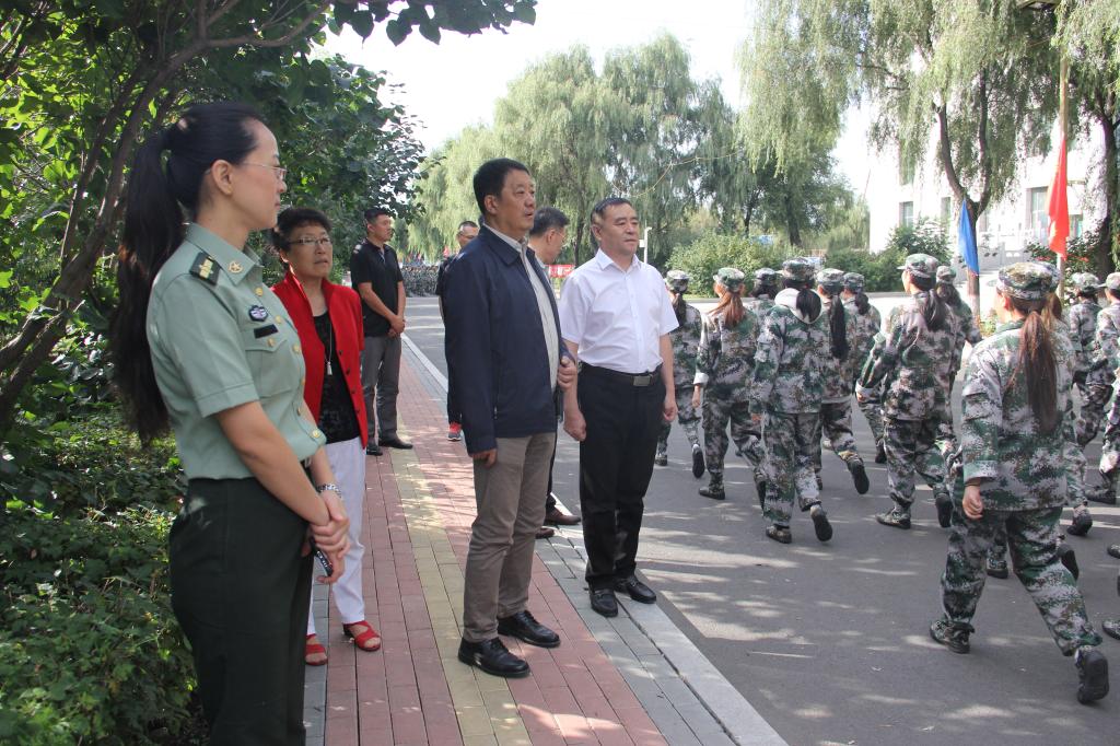 9月9日上午,冰球官网校长冯晓,党委书记焦光纯,党委副书记、副校长杨宏,副校长杨春文,副校长唐懋滨,副校长冯研及学工处、教务处负责人一行深入2019级学生军训场地,看望慰问参训的教官、学生和现场带训的辅导员。