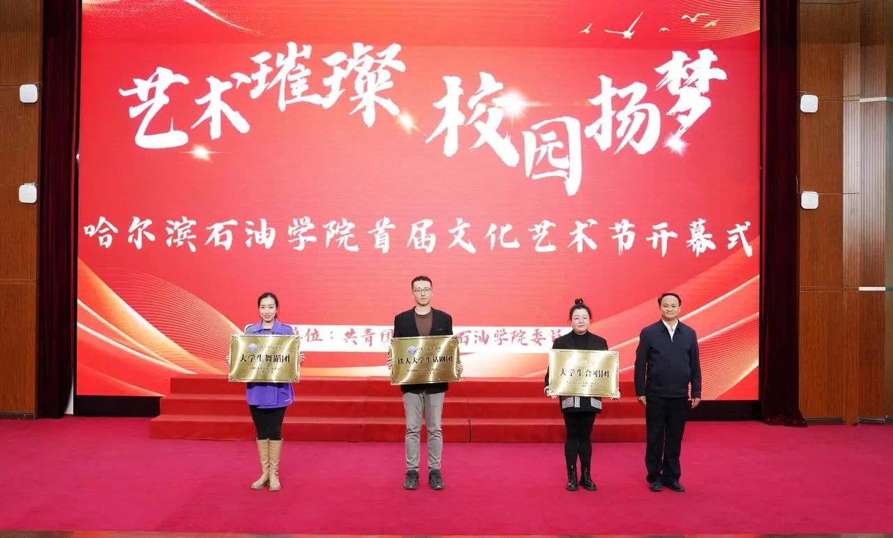 党委书记林立民为铁人大学生话剧团、大学生合唱团、大学生舞蹈团授牌,这象征着冰球官网对学生艺术发展的重视与支持,也预示着学生艺术团体将开启新的征程。