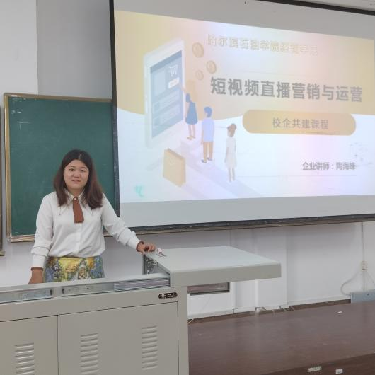 陶海峰总裁作为短视频公司总负责人,能够深度了解新媒体营销发展动态和短视频推荐机制,并在讲座过程中,对我院学生倾囊相授。我院院长任洪云也对校企共建课程高度关注,在开课仪式上,她指出校企双方都应力求通过课程内容的重新构架,提高课程质量,做到产教深度融合,将校企共建课程作为经济管理学院各专业人才培养的一种可复制、可推广、可应用的培养模式,以此来实现校企双方资源高效融合共通,深化校企合作协同育人机制,并改革人才培养模式。