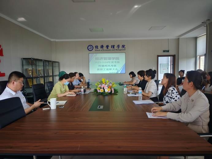 为贯彻落实学校关于开展 2023-2024 学年度教职员工考核及2023-2024学年师德师风考核评价工作的通知,经济管理学院根据学校有关规定及学院工作实际,召开2023-2024年度考核暨师德师风考核教职工述职大会。