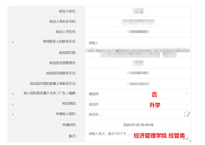 转入组织是否属于北京/广东/福建(选择“否”)