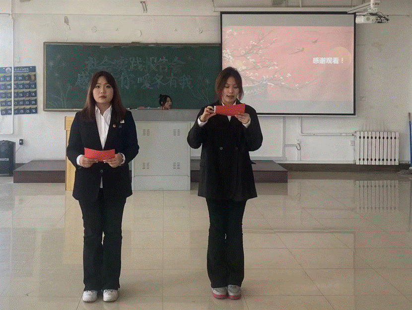冬日的严寒中,有那么一群人,用他们的行动为寒冷的季节增添了一抹温暖,进行了一场以“感恩有你,暖冬有我”为主题的社会实践活动。在实践过程中,我院学生不畏严寒,前往社区、政府、派出所、超市做自己力所能及的事情。每一个细小的举动,都传递着温暖和关怀。报告会上,志愿者们分享了自己的实践经历和感受。他们表示,通过这次社会实践,不仅锻炼了自己的实践能力和团队合作精神,更深刻体会到了帮助他人的快乐和满足。他们表示,要将这份温暖和爱心传递下去,为更多的人带去帮助和关怀。