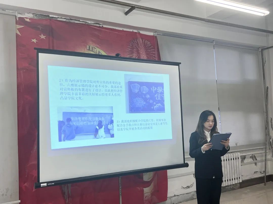 为深入贯彻落实习近平总书记“砥砺品德,陶冶情操,刻苦学习,全面发展,掌握真才实学,努力成为建设伟大祖国、建设美丽家乡的有用之才、栋梁之材”的重要嘱托,提高学生联合会干部队伍的整体素质,12月18日,经济管理学院学生联合会在第二教学楼601会议室召开2023年度述职报告会。经济管理学院党总支书记吴东爽、团总支书记邱晨明出席会议,我院学生联合会主席团成员及各部门负责人参加。