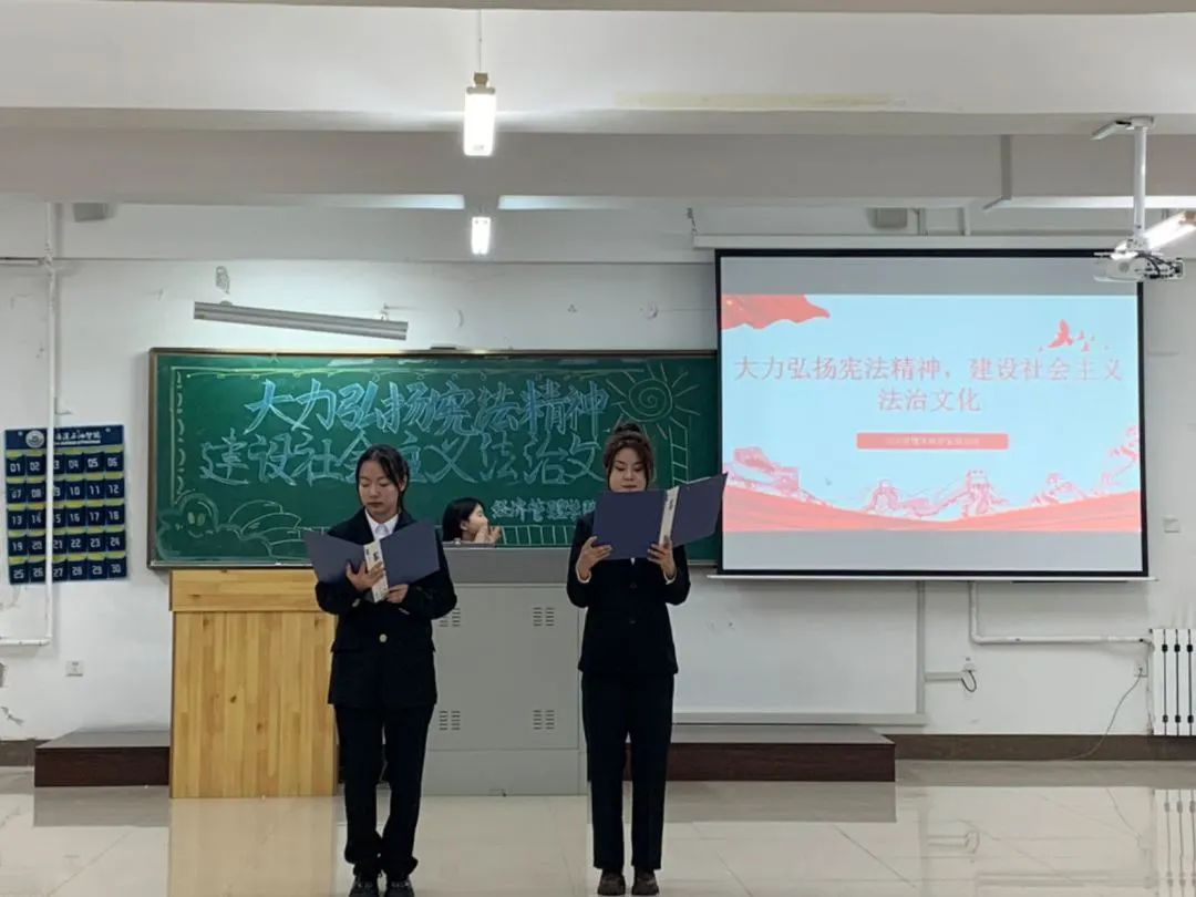 为响应国家“建设法治社会”的号召,全面贯彻党的二十大精神,落实习近平总书记提出的宪法要求,学习习近平法治思想,强化宪法意识,弘扬宪法精神,推动宪法实施,经济管理学院积极开展形式丰富多彩的宪法宣传活动。