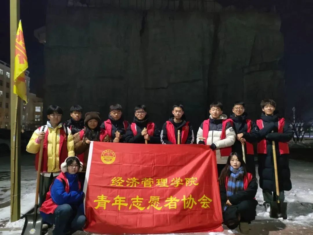为保障广大师生日常出行安全,减少地面积雪结冰带来的安全隐患,同时加强学院志愿劳动服务建设,引领广大学生在实践中培养劳动意识,12月4日,经济管理学院青年志愿者协会在校园内开展以“志愿扫雪,保通行动”为主题的实践活动,我院青年志愿者协会全体成员参加。