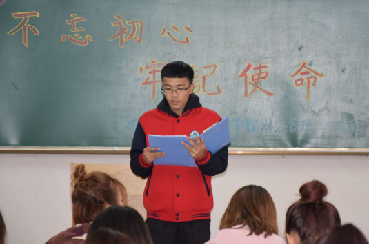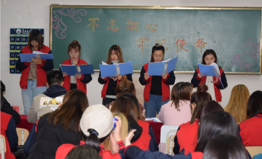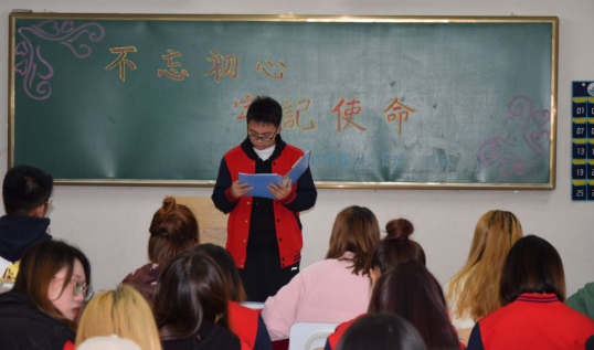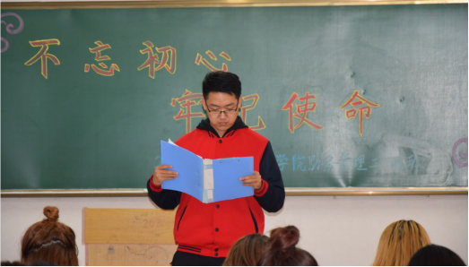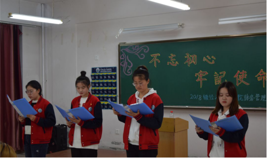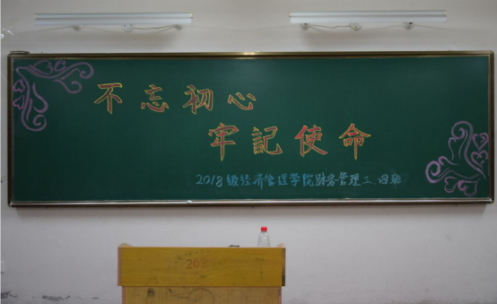 为庆祝祖国成立七十周年,经济管理学院2018级财务管理3、4班于10月14日在第二教学楼209教室联合开展“不忘初心,牢记使命”主题团活。