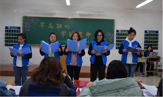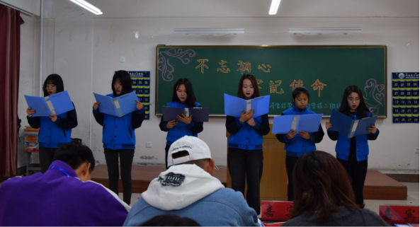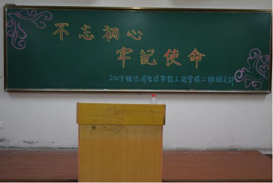 为庆祝建国七十周年,积极贯彻党的十九大精神,经济管理学院2019级工商管理2班于10月14日在第二教学楼203教室开展以“不忘初心,牢记使命”为主题的团活。
