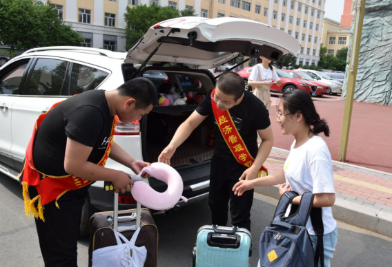 为了解决毕业生们集中离校难的问题,在党总支书记吴东爽的带领下,我院的志愿者和教师们分别组成了“温暖送行”服务队和“爱心送站”私家车队。