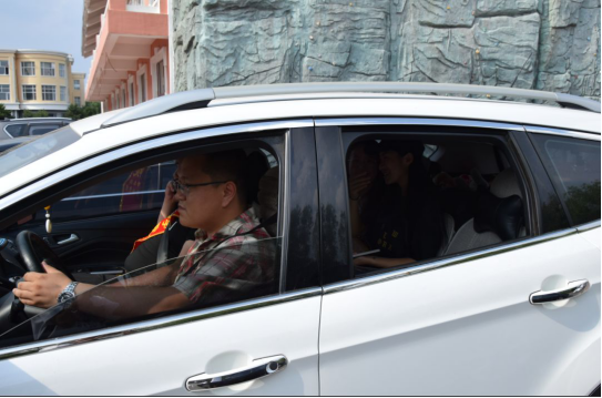 由教师们组成的爱心车队准时在攀岩场集合,与离校毕业生一一对接,依次把毕业生安全送至哈尔滨北站,在最后上车之际,毕业生们与老师、同学深情拥抱合影留念。