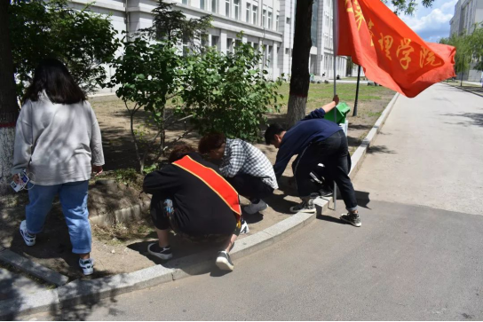 在进行演讲宣传教育的同时,由志愿者服务队副队长魏星、组织部副部长王兆鹏带领的志愿者们,在校园里进行以拾捡烟头为主的校园清理活动,为同学们营造了一个健康、干净、无烟的校园环境。