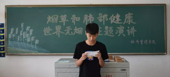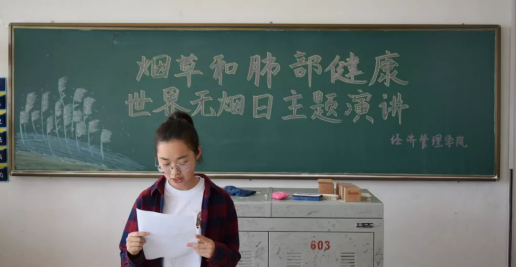 为创造无烟环境,构建文明校园,引导同学们增强控烟戒烟意识,养成良好习惯。经济管理学院于5月31日在第二教学楼603教室举行主题为“烟草和肺部健康”的演讲活动。