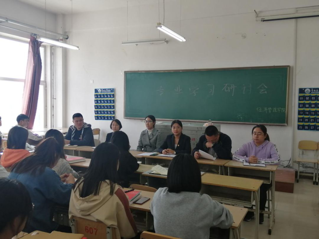 2019年9月19日下午,我学院在二教609教室召开专业学习研讨会,出席本次专业学习研讨会的有:经济管理学院院长任洪云老师,办公室主任刘芳欣老师,财务管理系主任郑彩飞老师,团总支书记陈志勇老师,18级辅导员任晓婷老师、刘冰老师,以及2018级财务管理一、二班全体同学。