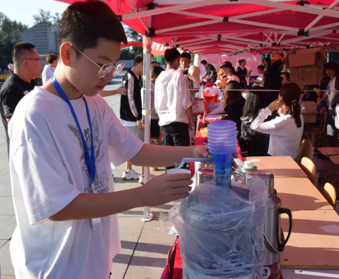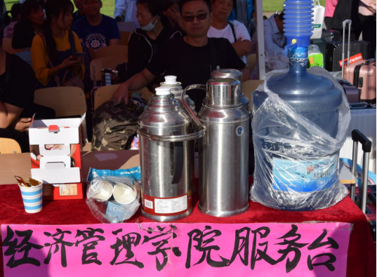 迎新时刻二:清晨时分,凉风习习,迎新工作也已开始。由于时间较早,学院为没来得及吃早餐的新生和家长以及迎新工作人员准备了暖心早餐及热水、咖啡、茶水等饮食。