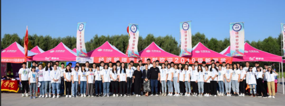 迎新时刻一:迎新工作人员在指定地点搭建帐篷、摆放桌椅、安插旗帜、布置会场;此外,还专为家长和学生设置了一个临时休息和存放行李的区域。按照之前的分工对接,迎新人员各司其职,有条不紊的进行着迎新准备工作。